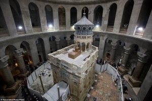 Just in time for Easter, a Greek restoration team has completed a historic renovation of the Edicule, the shrine that tradition says houses the cave where Jesus was buried and rose to heaven. Source: Historic restoration of Jesus’ burial shrine completed | Daily Mail Online
