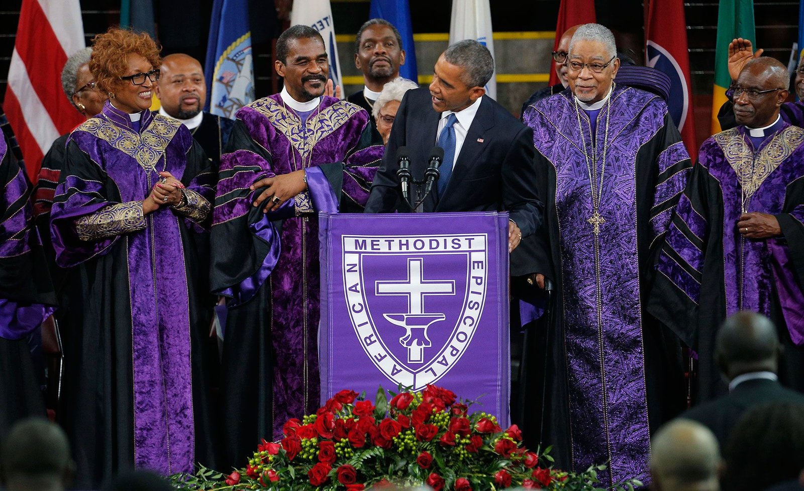 President Obama leads mourners in singing “Amazing Grace” as he delivers a eulogy for the Rev. Clementa Pinckney during funeral services in Charleston, S.C., June 26, 2015. Pinckney was one of nine victims of a mass shooting at the Emanuel African Methodist Episcopal Church. Ever since the administration
