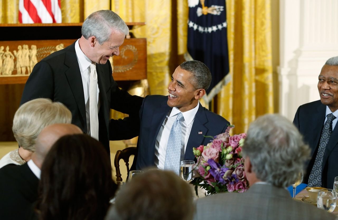 President Obama greets Joel Hunter, senior pastor of Northland Church in Longwood, Fla., at the White House Easter Prayer Breakfast, April 14, 2014. A collection of evangelical leaders has formed a new group to stand in contrast to conservative Christians who have endorsed Republican nominee Donald